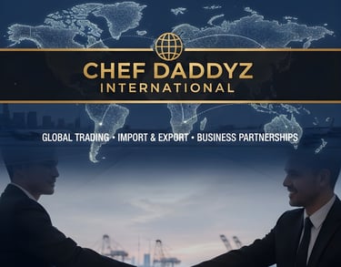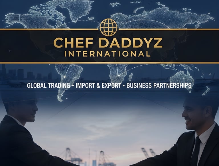 Chef Daddyz International is the global trading and import–export arm of the Chef Daddyz Group, specializing in the sourcing and distribution of quality food products and related goods. Built on the group’s strong culinary expertise and quality standards, the company connects trusted producers with international markets, delivering reliable trade solutions with a focus on consistency, compliance, and long-term partnerships.