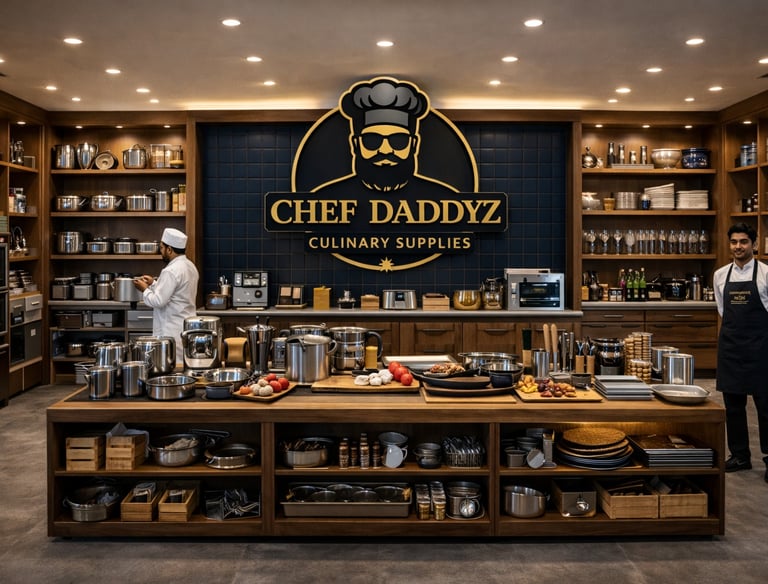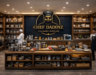 A curated retail space for high-quality kitchen tools, equipment, spices, and gourmet ingredients—supporting restaurants, cafés, and home chefs alike.
