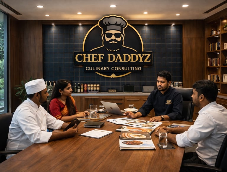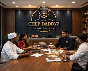 Chef Daddyz Group provides professional culinary consultancy services including menu engineering, kitchen setup, cost optimization, staff training, and brand development—helping food ventures grow smarter and stronger.